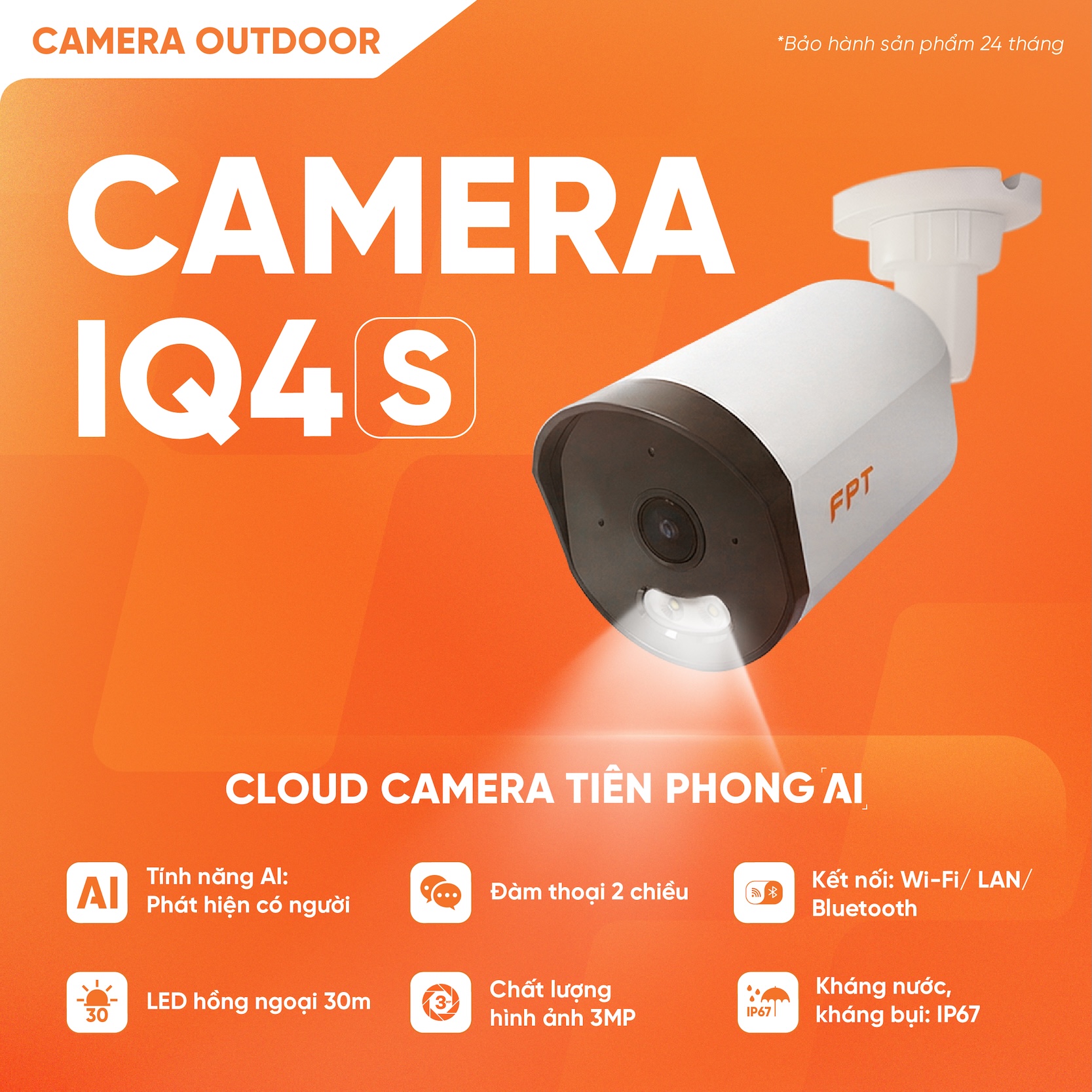 FPT Camera IQ4S là camera ngoài trời kết hợp giữa sức mạnh AI tiên tiến và khả năng chống chịu khắc nghiệt của thời tiết. Với thiết kế cứng cáp, tính năng cảnh báo chủ động và hệ thống lưu trữ Cloud bảo mật, IQ4S là sự lựa chọn hàng đầu để bảo vệ an ninh nghiêm ngặt cho sân vườn, bãi xe và khu vực cửa ngõ của gia đình Việt.